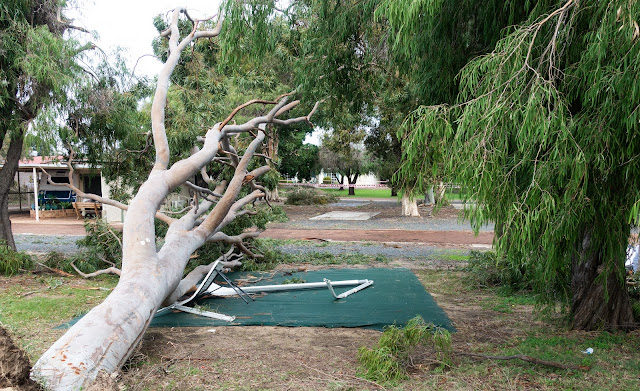 We stayed an extra day in Bunbury to take part in the WA Day celebrations. We walked into Bunbury to the fun fair and market. what a fizzer.! There were only four market stalls, a few rides for littlies and half a dozen food vans. We then strolled down to Koombana Beach where we saw the damage that Saturday's tornado had caused.
